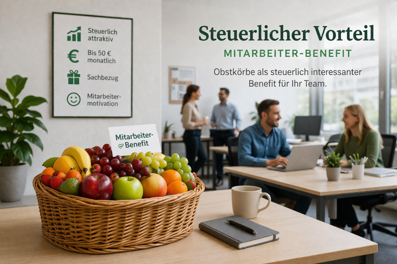 Obstkörbe sind nicht nur ein Geschenk, sie sind eine wertvolle Investition in die Zufriedenheit und Motivation Ihrer Mitarbeiter! Sie haben die Möglichkeit, Ihren Mitarbeitern Sachbezüge von bis zu 50 Euro monatlich zu gewähren, die vollständig steuer- und sozialabgabenfrei sind.